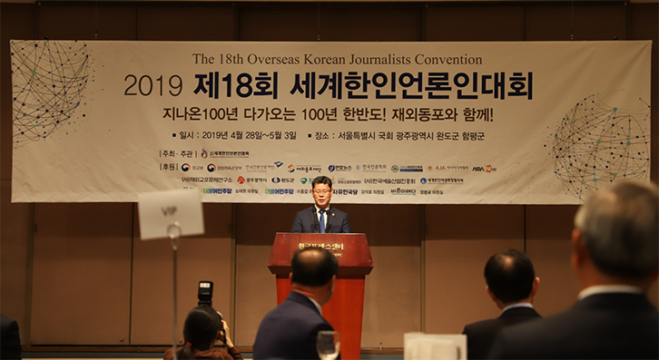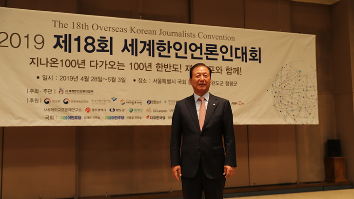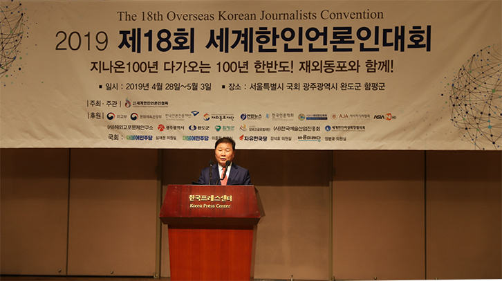 2019년부터 세계한인언인인협회 총재로 추대된 정영수 CJ글로벌경영 고문은 환영사에서 "이번 대회가 한반도와 한민족을 소중하게 기억하고 생각하며 대한민국 100년의 발전과정을 성찰하고 나아가 희망찬 미래 100년을 재외동포들과 함께 만들어가야 할 것"이라고 강조했다.