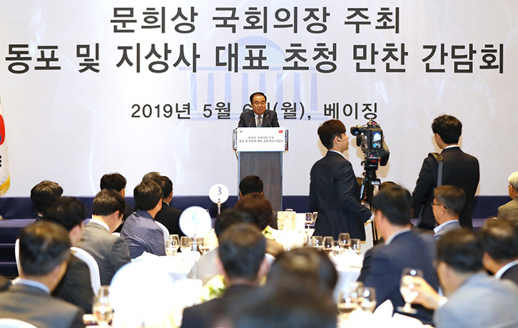 - 문 의장, 중국 베이징에서 동포 및 지상사 대표 초청 만찬간담회 가져 -