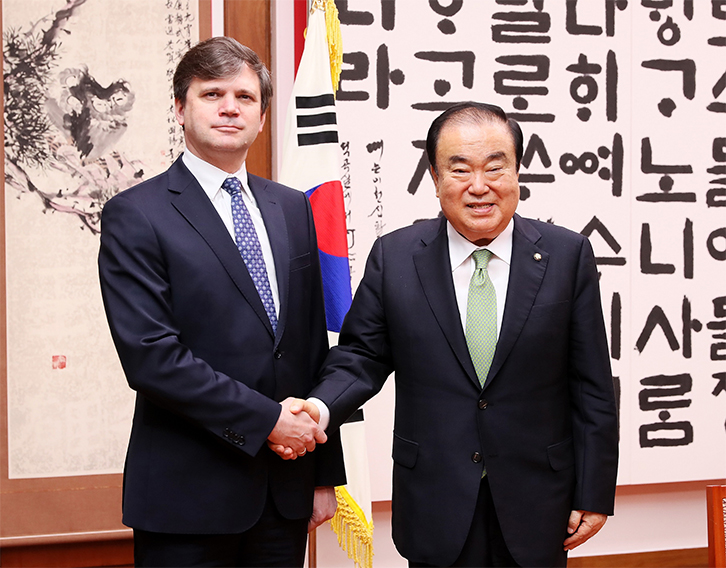 문희상 국회의장은 6월 18일 오후 의장집무실에서 안드레이 포프코브(Andrei Popkov) 주한벨라루스대사를 만났다