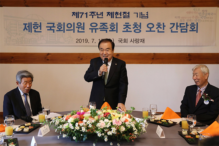 - 문 의장, 제71주년 제헌절 기념해 의장공관에서 헌정회 초청 첫 오찬 가져 -