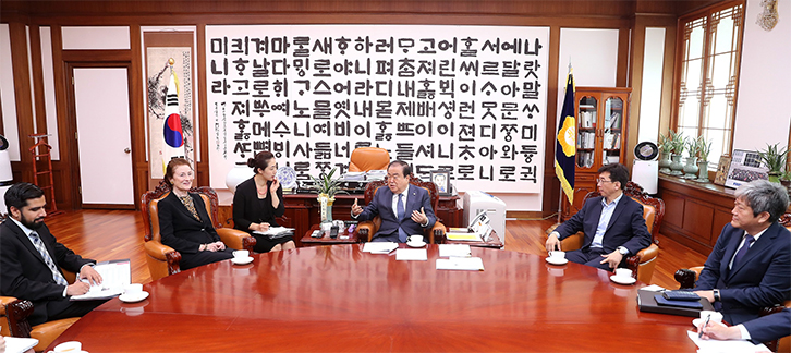 또한 문 의장은 포어 유니세프 총재가 “북한 어린이들을 대상으로 예방접종, 영양실조 치료, 결핵검사 등을 지원하고 있는데 아직 부족한 부분이 많다”는 말에 “북한과 관련된 문제는 대한민국의 책임이 큰데, 우리보다 더 많이 신경써주셔서 죄송스럽고 감사하다. 한국도 지원을 아끼지 않겠다”고 말했다.