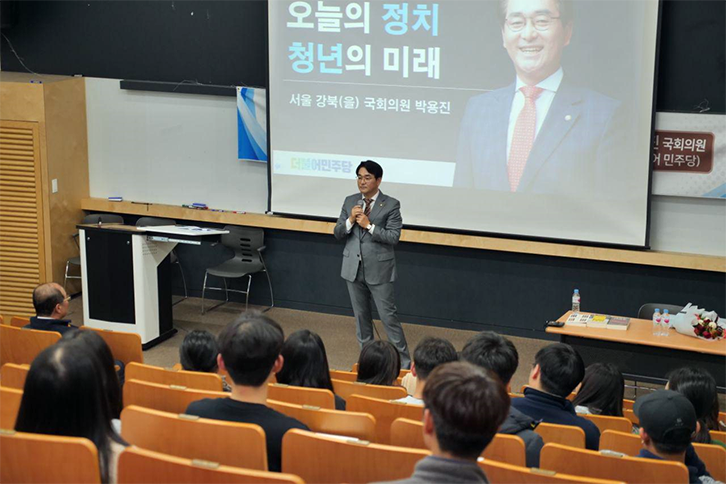 박용진 국회의원(더불어민주당, 강북을)은 18일 오후 4시 경북대학교 교육대학원에서 '오늘의 정치, 청년의 미래'를 주제로 특강을 했다.