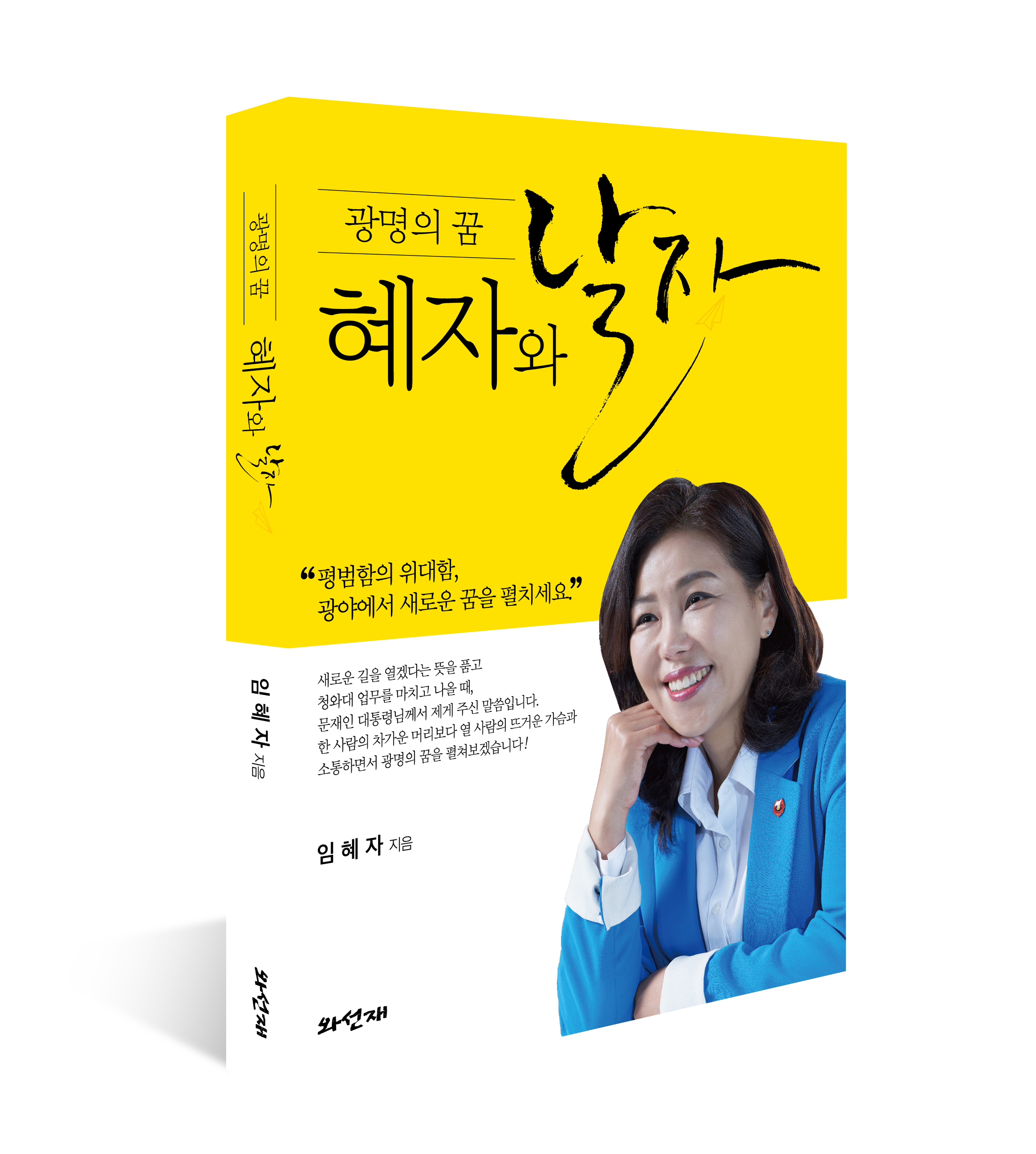 이번에 출간된 저서 <광명의 꿈, 혜자와 날자>에는 임혜자 전 선임행정관이 1997년 김대중 총재로부터 당보기자로 발탁되어 정계에 입문한 이후 노무현 대통령과 문재인 대통령에 이르기까지 세 번의 대선 승리에 기여하며 배운 정치철학, 청와대 선임행정관으로서 다양한 민원을 해결하며 익힌 갈등 조정의 해법, 주거·교육·복지·교통·환경 등 광명이 안고 있는 다양한 현안 이슈에 대한 생각 등을 담고 있다.