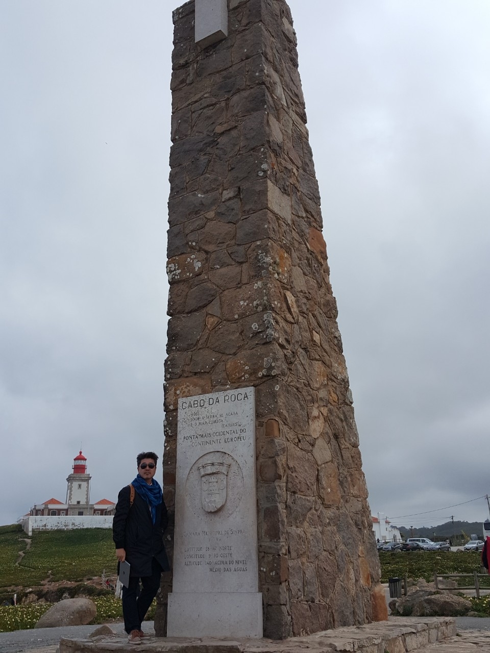 절벽 가까이에 거친 돌로 쌓아 올린 기둥 위에 돌 십자가가 올려져 있다. 여기 이곳에서 저 먼 바다를 건너는 이들에게 신의 가호라도 내리는 것일까. 이 십자가의 힘에 의지하며 거친 폭풍우와 풍랑을 이겨낸 이들도 있으리라. 무탈하게 돌아 온 이들은 이 돌기둥 앞에 서서 감사의 기도를 올렸으리라 . 돌기둥에 박힌 하얀 표지석에는 포르투갈어로 ‘유럽대륙의 서쪽 끝(POnTA MAiS OCiDenTAl DO COnTineTe eUrOPeU)’이라는 글과 위도(38도 47분), 경도(9도 30분) 그리고 고도(140m)가 표시되어 있다.