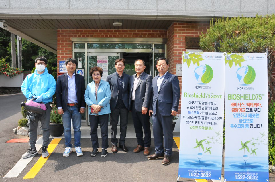 ㈜NDF KOREA는 바이러스, 세균, 곰팡이에 대한 감염 케어 전문 특수코팅업체로, 바이오마스크와 바이오쉴드75 표면항균코팅제를 출시해 각광을 받고 있다. 이 표면항균코팅제는 표면에 존재하는 박테리아, 바이러스, 세균 및 곰팡이 등의 광범위한 미생물에 대해 물리적인 원리로 살균작용을 한다. 뽀족한 칼 모양의 양전하를 띤 나노 크기의 분자가 음전하를 띤 미생물을 전기적으로 끌어당겨 관통시키고 감전을 시켜 사멸시키는 것으로, 미국 환경보호청(EPA), 미국 농림부(USDA), 뉴질랜드 식약청(MPI), 할랄 인증을 받은 제품을 사용한다.