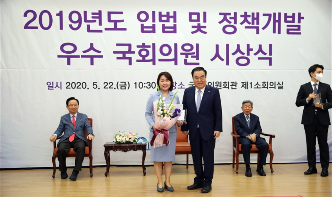 송희경 의원(과학기술정보방송통신위원회 간사, 여성가족위원회 간사, 미래한국당 비례대표)이 22일 『2019년도 입법 및 정책개발 우수 국회의원상』을 수상했다. 3년 연속 수상이다.