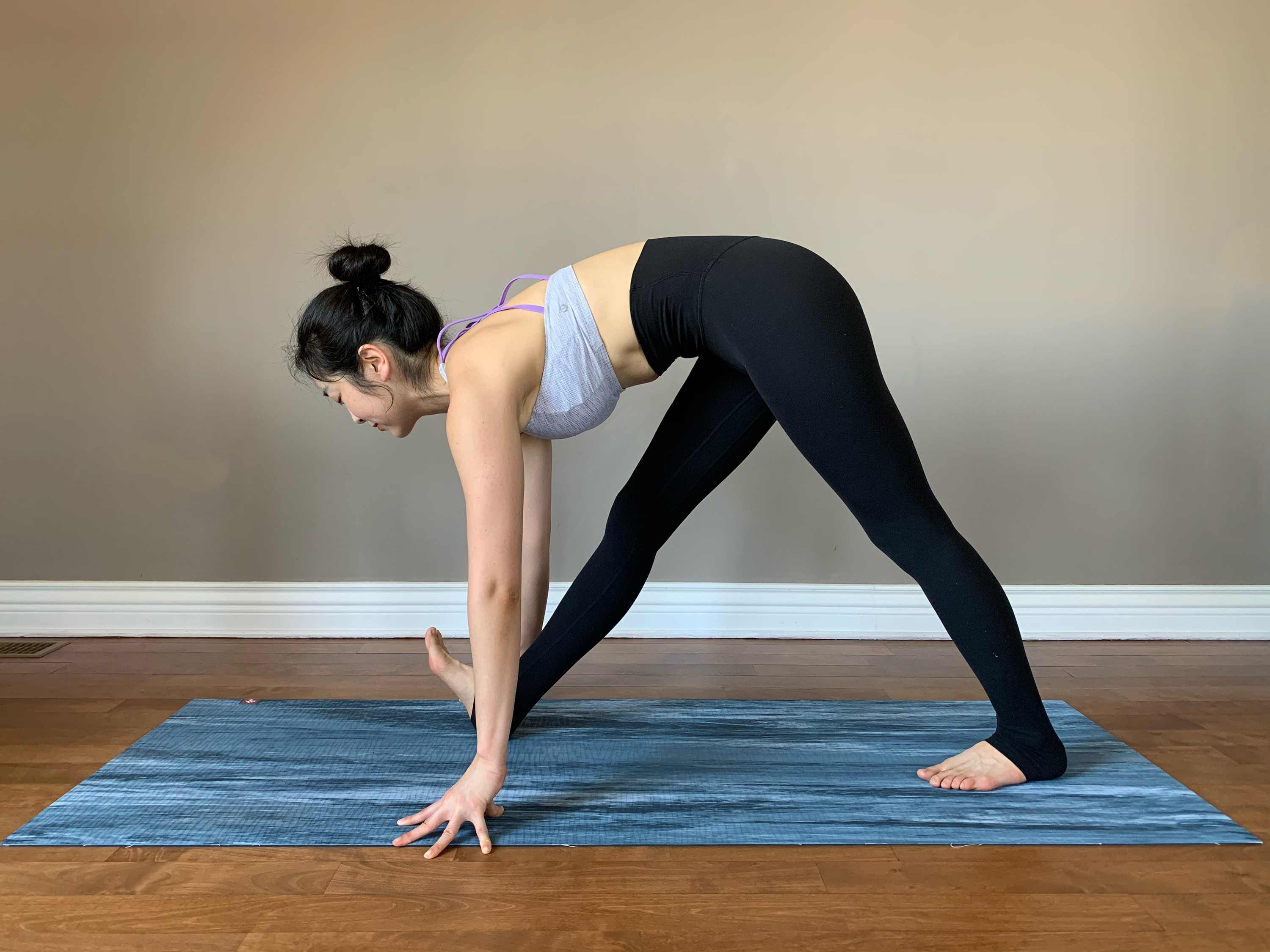 2. 내쉬는 숨에 천천히 상체를 접어 앞으로 전굴해줍니다.