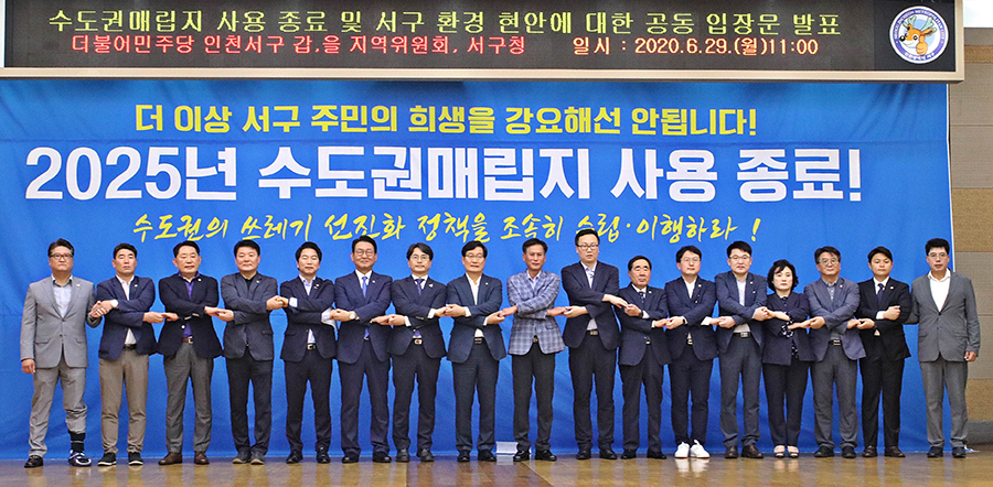 이어 신 의원은 서구 지역 환경개선을 위해 ▲2025년까지 수도권매립지 반드시 종료 ▲폐기물 발생지 처리원칙 준수 ▲정부의 폐기물관리정책 패러다임 전환과 대체매립지 조성 촉구 ▲수도권매립지 종료 로드맵 구축을 위한 사회적 합의 추진 등 네 가지 입장을 밝혔다.