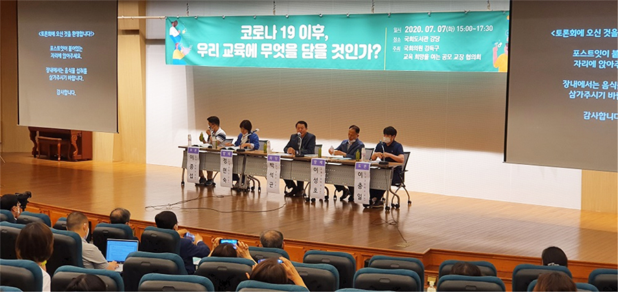 포스트 코로나 시대, 교육 현장의 고민을 공유하고 향후 과제와 대안을 모색하기 위해 <코로나19 이후, 우리 교육에 무엇을 담을 것인가> 토론회가 7일 오후 3시 국회도서관 강당에서 성황리에 개최됐다.