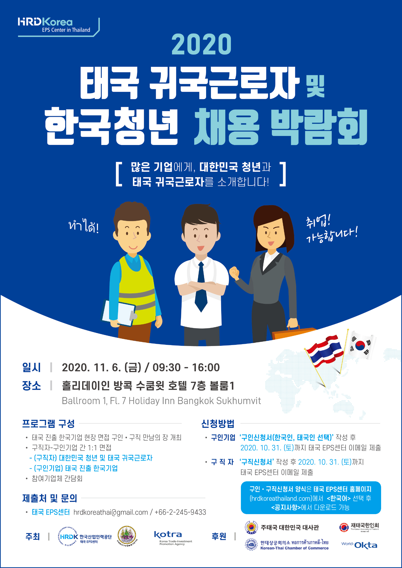 2020 태국 귀국근로자 및 한국청년 채용 박람회 데일리피플 | DailyPeople 2020. 10. 27. 공유하기 게시글 관리 peopletv.co.kr 저작자표시 (새창열림) '데일리피플 | DailyPeople' 관련 글 더 보기 중소기업유통센터, 아임스타즈X올리브영 입점 매칭데이 참여 중소기업 모집 2020.10.27 더 읽기 건국AMC, ‘착한 임대 캠페인’ 지역경제 활성화 표창장 받아 2020.10.27 더 읽기 6대 광역시 및 제주특별자치도 문화예술교류전(영화) 대전서 열려 2020.10.26 더 읽기 코로나 확진 된 근로자 중 부당해고 등 퇴직 1천304명 2020.10.26 더 읽기 댓글