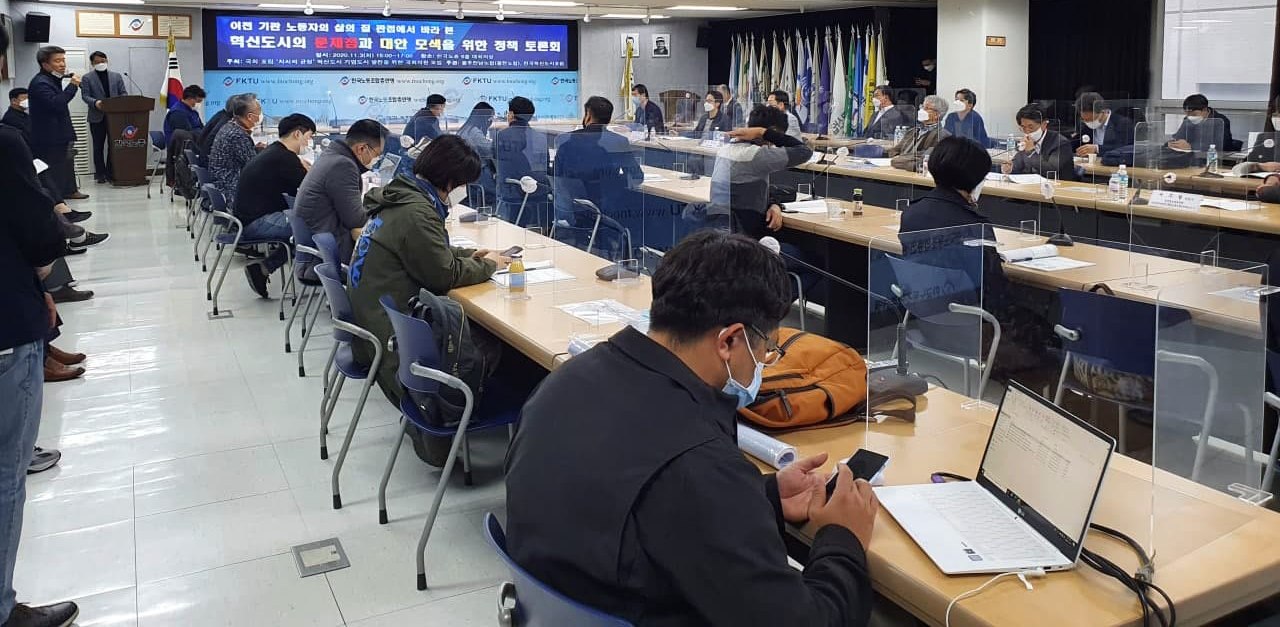 11월 3일 국회 포럼 ‘자치와 균형’과 혁신도시 기업도시 발전을 위한 국회의원 모임 주최로 이전 기관 노동자의 삶의 질 관점에서 바라 본 혁신도시의 문제점과 대안 모색을 위한 국회 정책 토론회가 열렸다. 기존의 토론회가 국회나 지자체 주도로 개최돼 지역발전과 지방 소멸 방지를 위해 2차 이전의 필요성이 강조된데 반해, 이번 토론회는 혁신도시에 실제 이주한 공공기관 노동조합 주도로 진행돼 이주자 관점에서 혁신도시의 성과를 가감 없이 평가했다는 점에서 의미가 있는 토론회였다.