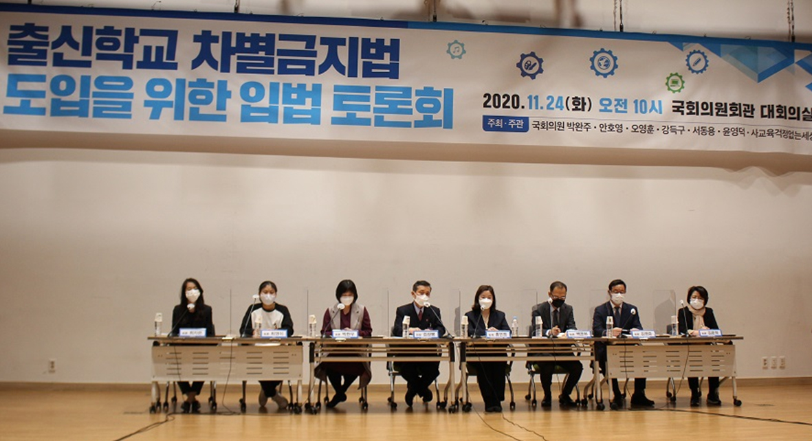 국회 교육위원회 소속 강득구 의원(더불어민주당, 경기도 안양만안)은 지난 24일 국회 의원회관 대회의실에서 '출신학교 차별금지법 도입을 위한 입법 토론회'를 박완주·안호영·오영훈·서동용·윤영덕 의원, 사교육걱정없는세상 등과 함께 공동주최로 개최하였다.
