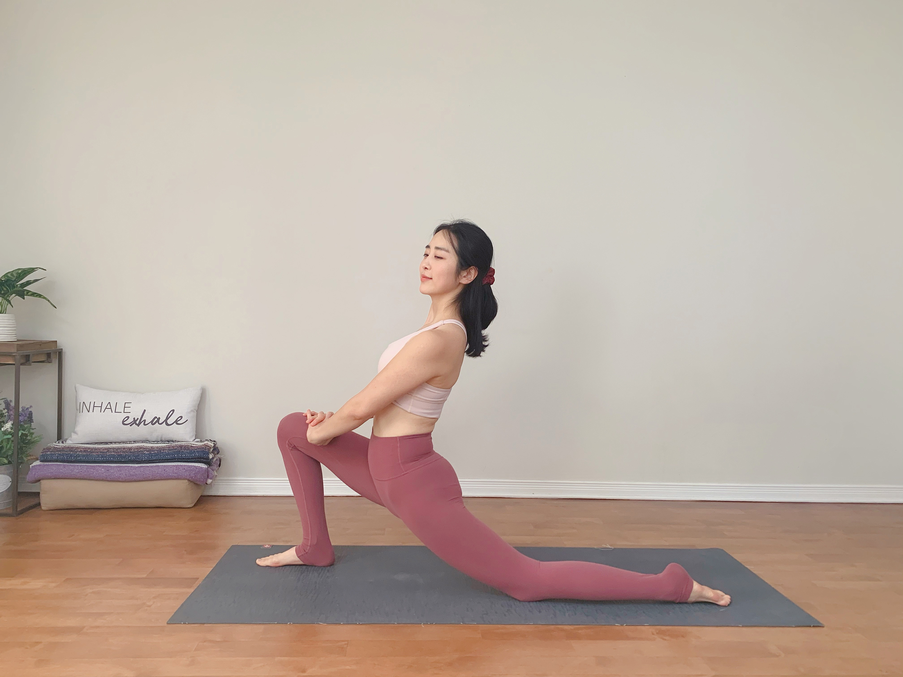 두번째 자세는 Crescent Lunge+ Side Bend입니다.