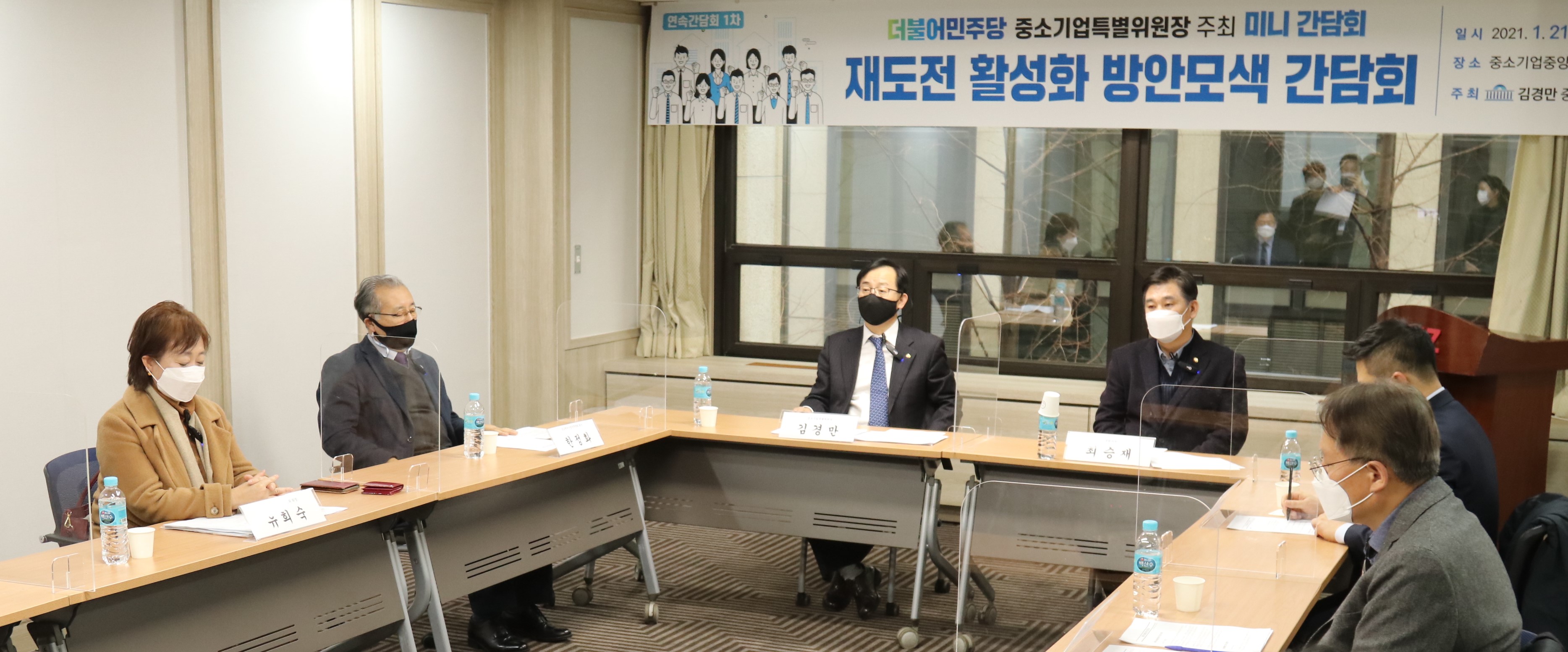 더불어민주당 중소기업특별위원회 위원장 김경만 의원은 21일 중소기업중앙회 2층 비전룸에서 ‘재도전 활성화 방안 모색 간담회’를 개최했다.