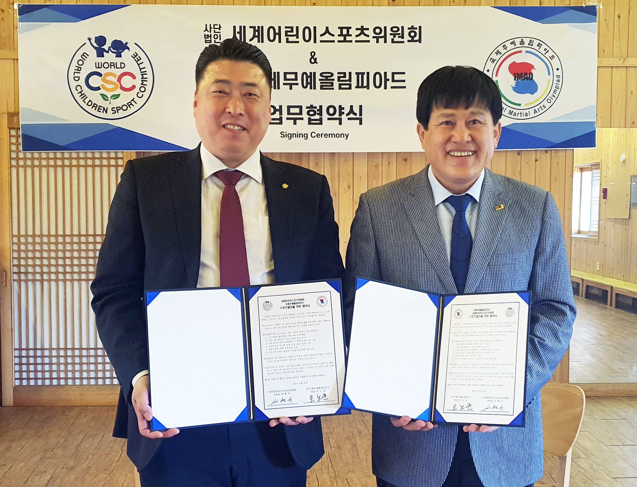 사단법인 국제무예 올림피아드(IMAO 위원장 오노균)와 세계 어린이스포츠위원회(World CSC 위원장 서현석) 이하 ‘위원회’)는 상호발전을 위한 업무협약(MOU)을 체결했다.