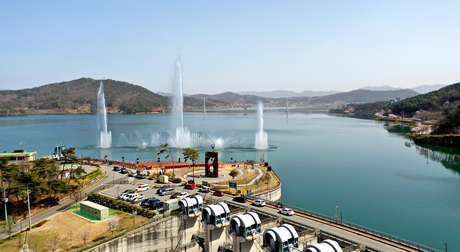 ▲출렁다리, 음악분수 등 탑정호 관광 포인트의 특징은 바로 자연경관과의 조화라고 할 수 있습니다. 출렁다리에 올라 탑정호의 수려한 경관을 한눈에 담을 수 있고 아름다운 선율과 빛이 어우러진 음악분수는 호수의 물빛과 더불어 다리 위 LED화면을 통해 환상의 하모니를 선보일 것입니다.