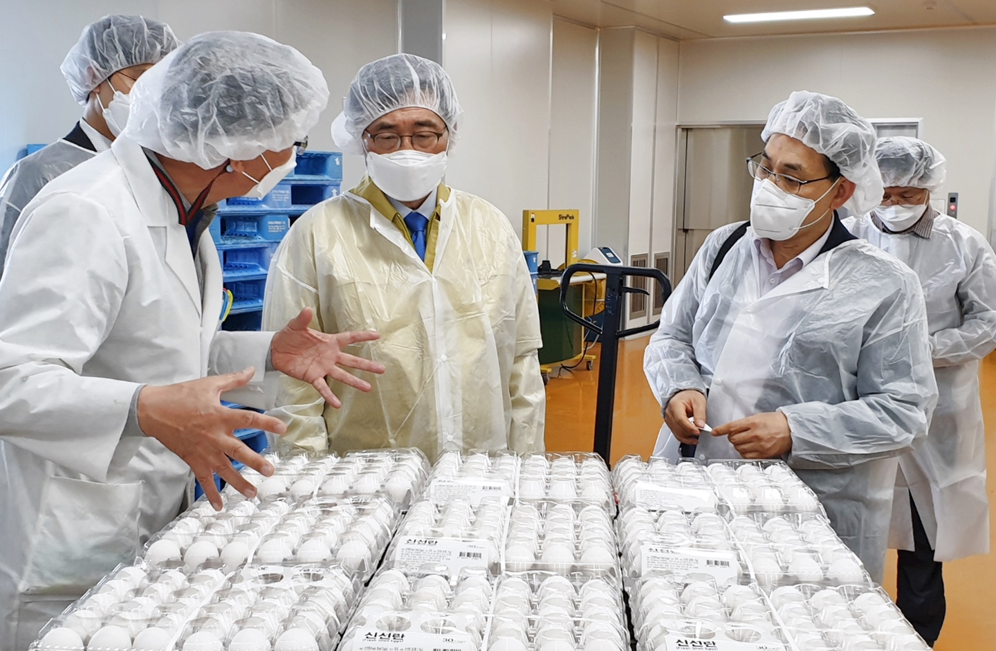 계란 선별·포장 업체 방문(좌측 세번째 aT 김춘진 사장)