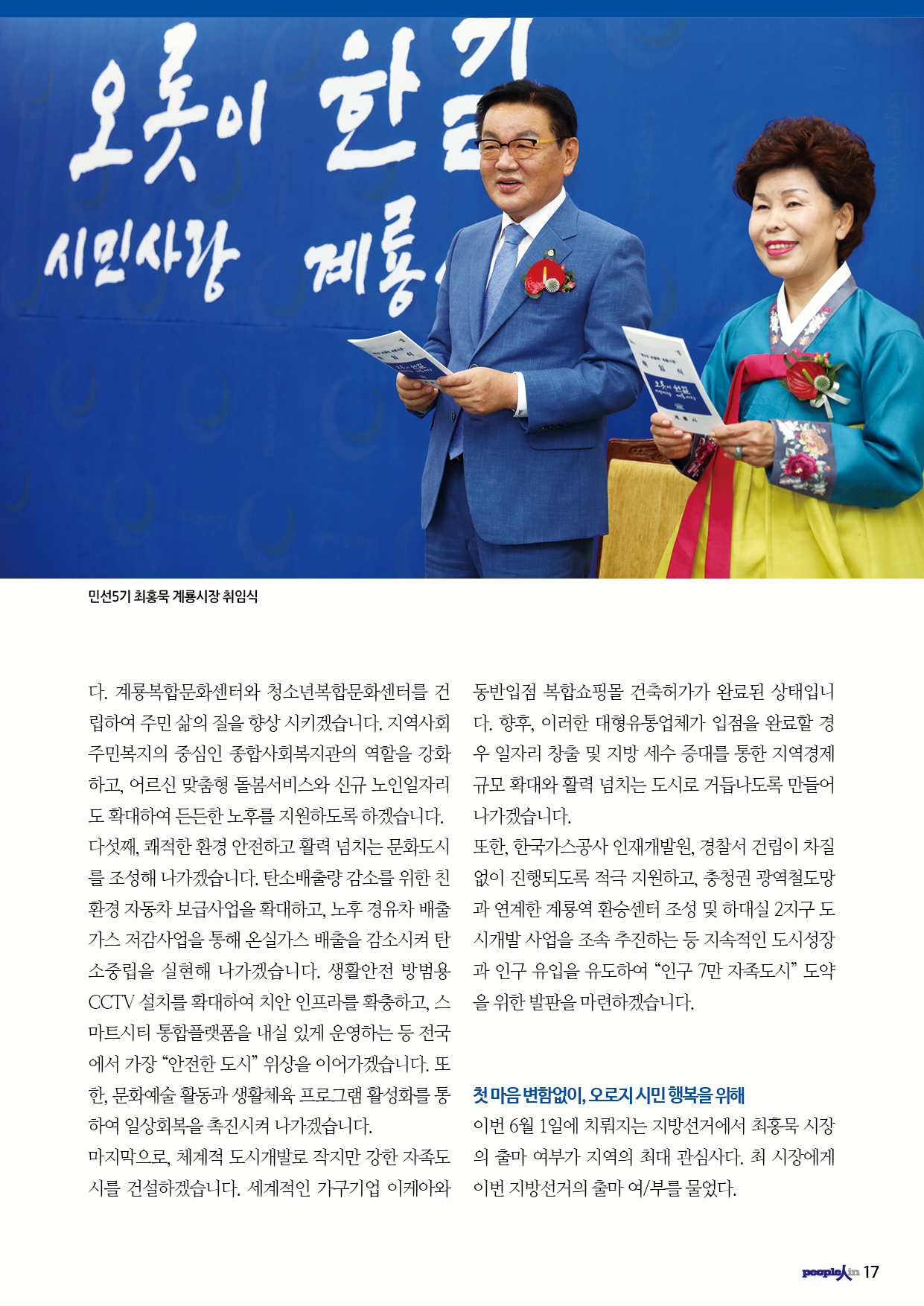 피플인 매거진 | 6호(2022년 3월) 데일리피플 | DailyPeople 2022. 3. 8. 공유하기 게시글 관리 peopletv.co.kr 저작자표시 (새창열림) '데일리피플 | DailyPeople' 관련 글 더 보기 이용우 의원, 금융실명법 개정안 대표발의 2022.03.11 더 읽기 “군산 새만금에 수산식품 산업기반 조성된다” 2022.03.08 더 읽기 이상민 의원, 교통약자 보편적 이동권 보장하는 ‘교통약자법’ 대표발의 2022.03.07 더 읽기 최춘식 “질병청 작성 유초중고 신속진단키트 정확도 낮고 실익 없다 문건 공개” 2022.03.04 더 읽기 댓글