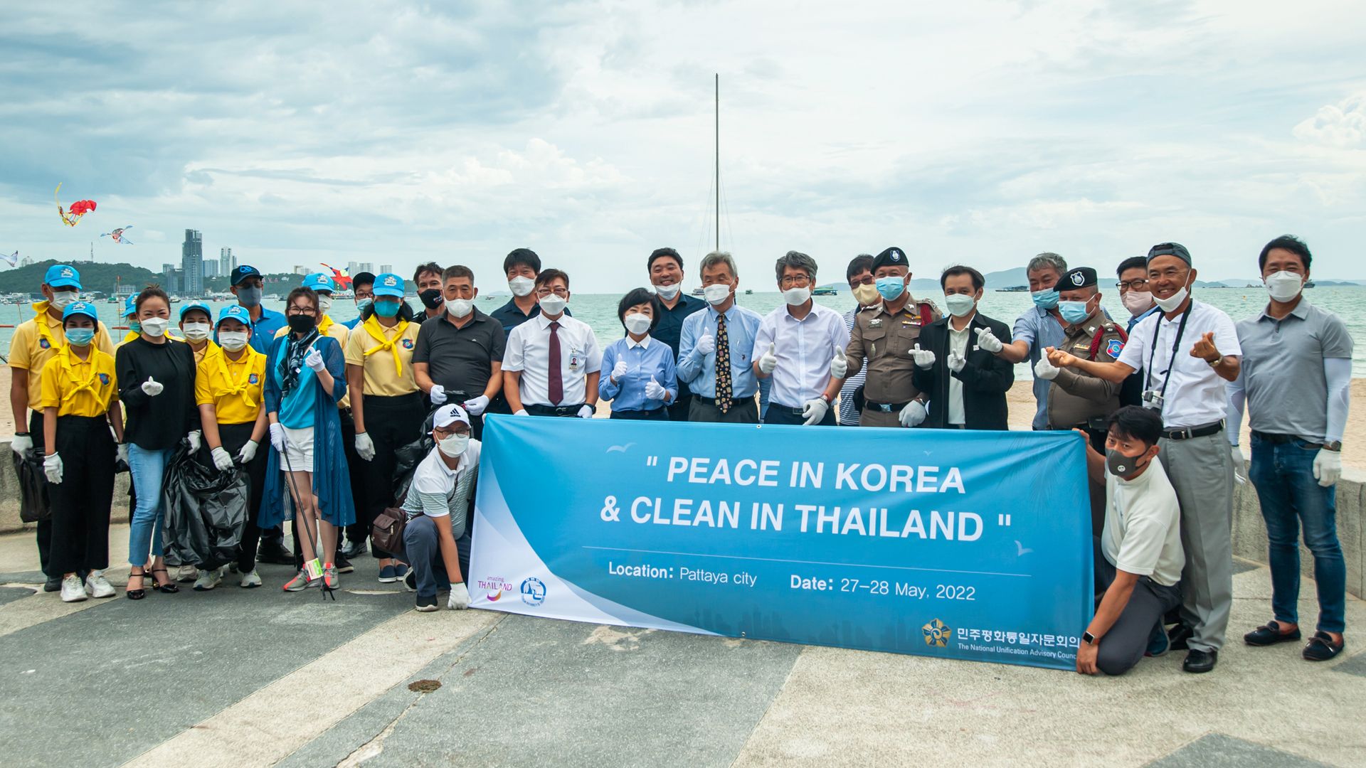 어어 현지교민, 태국관광청, 파타야 시청, 경찰서, 관광경찰 등과 함께한 “Peace In Korea & Clean In Thailand” 행사의 일환으로 파타야비치 소이 1~6까지 쓰레기 줍기 행사를 벌이고 현지 교민들에게 자체 제작한 마스크와 티셔츠를 전달했다.