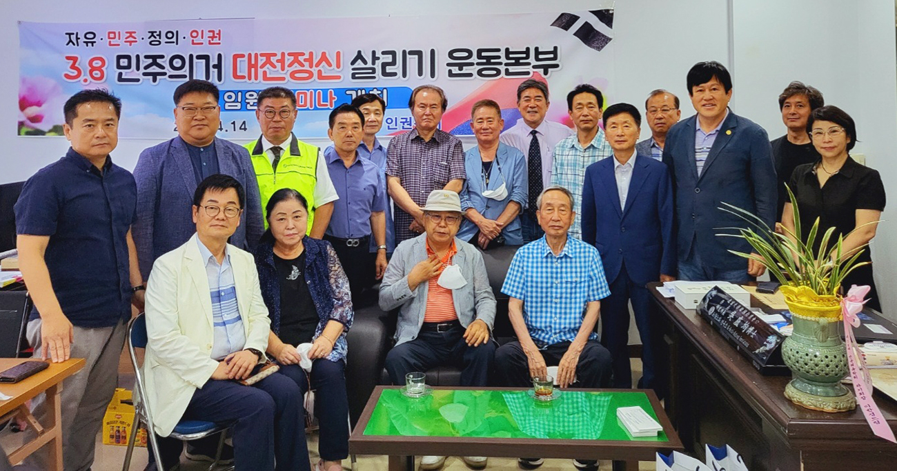 또한 김영광 3.8민주의거 기념관 설립추진위원장은 “나와 오노균 본부장은 동향으로 그동안 지역사회의 봉사와 활동 등을 지켜 보았는데 수고가 많다”며 “특히 대전충청의 최초 민주학생운동인 3.8 민주 정신을 대전정신으로 삼고자 여러분들이 함께 노력하는 모습에 격려와 큰 고마움을 전한다”고 격려했다.