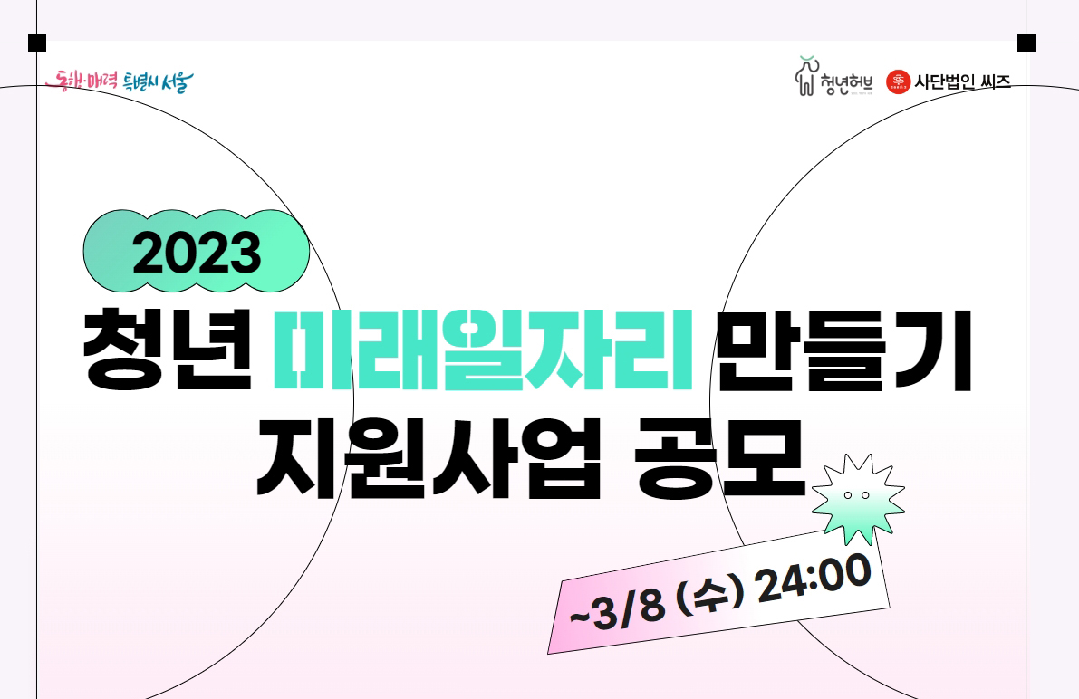 서울시 청년허브는 ‘2023 청년 미래일자리 만들기 지원사업’을 통해 청년 미래일자리 개발에 나설 기업과 단체를 이달 8일까지 모집한다고 밝혔다.