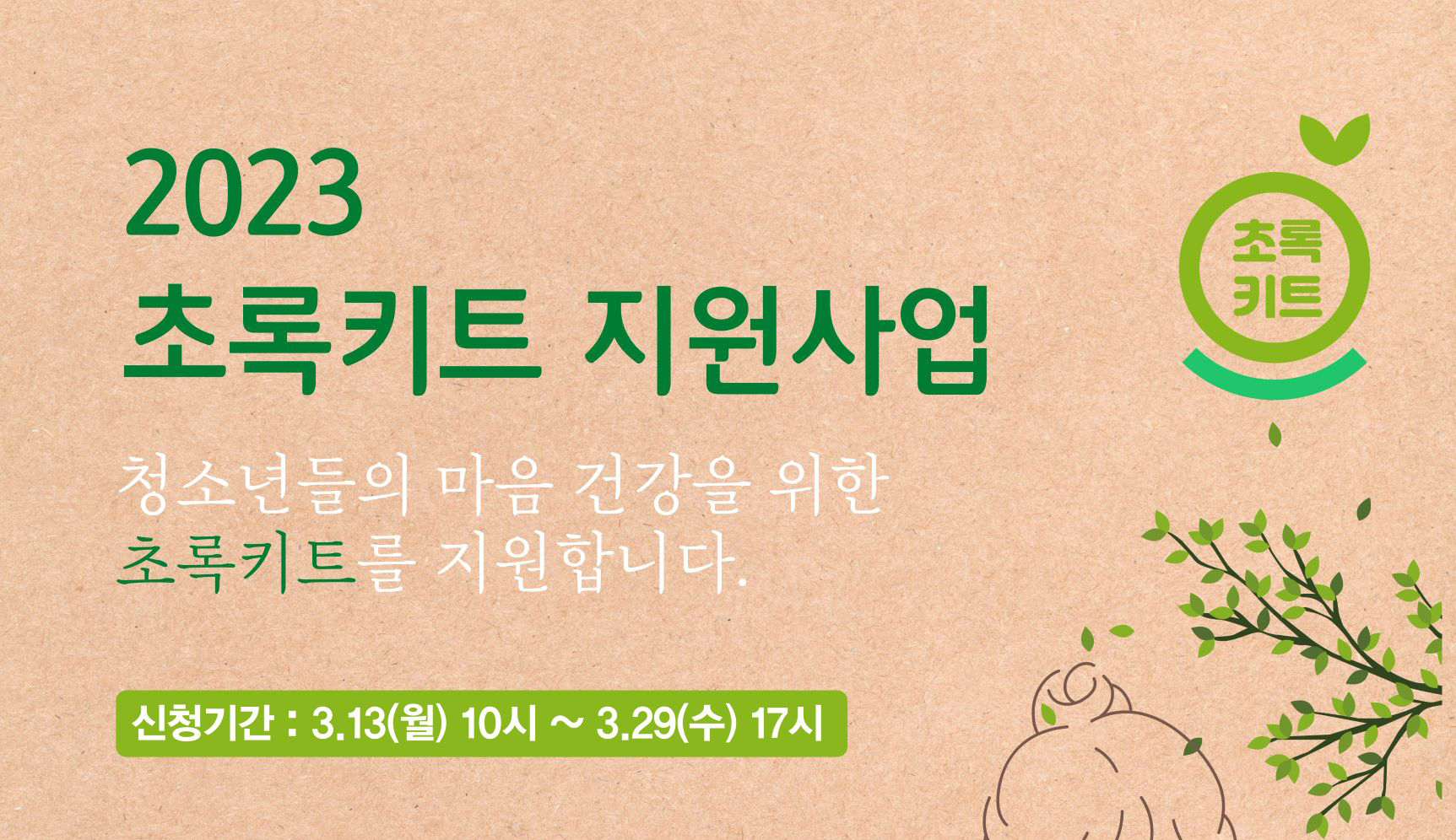 서울그린트러스트(이사장 지영선)가 정서적 회복이 필요한 청소년들을 위한 ‘2023 초록키트 지원사업’ 공모를 진행한다고 13일 밝혔다.