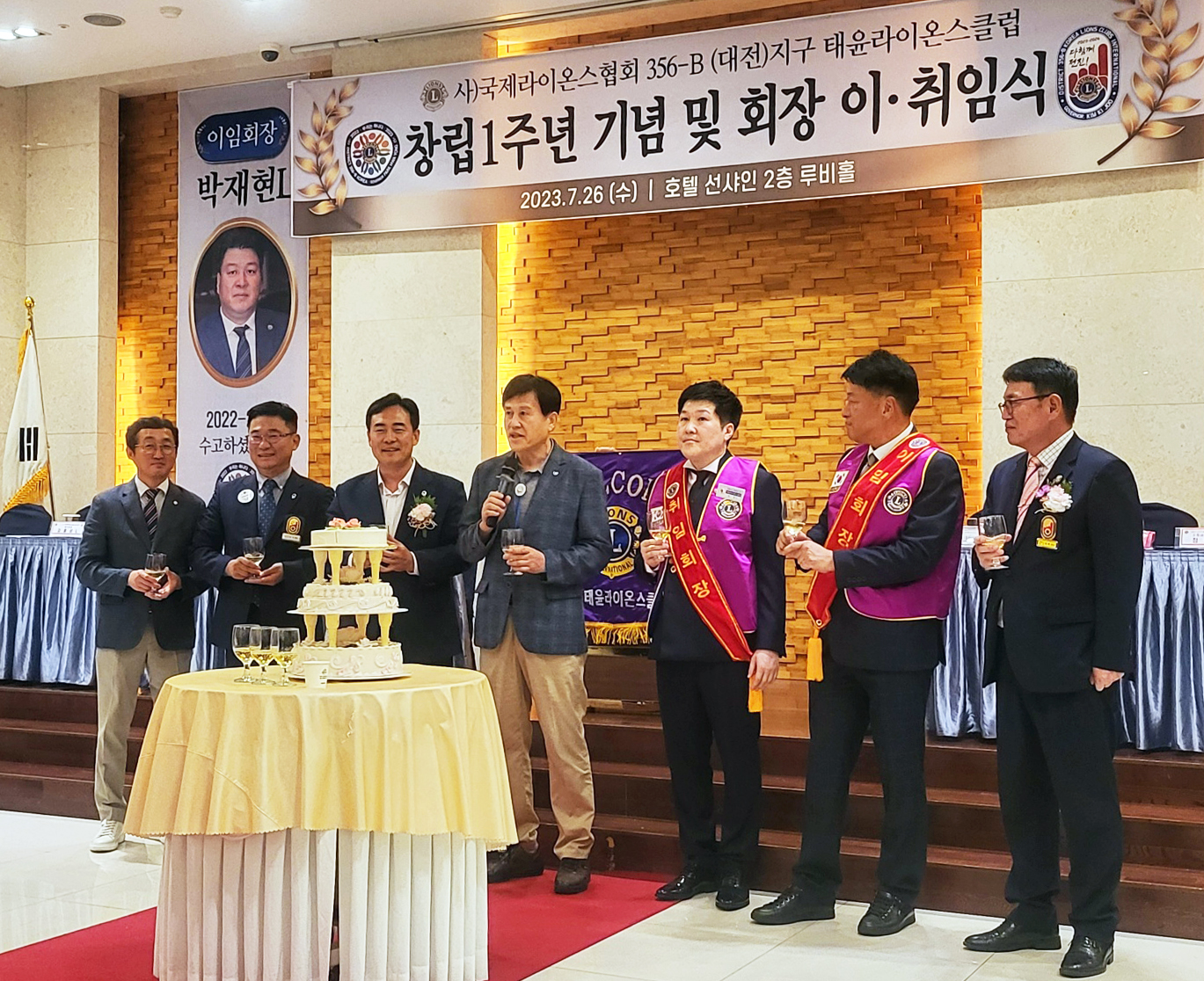국제라이온스협회356-B(대전)지구 태윤라이온스클럽 창립 1주년 및 회장 이·취임식이 26일, 대전선샤인호텔 2층 컨벤션홀에서 성대하게 열렸다.
