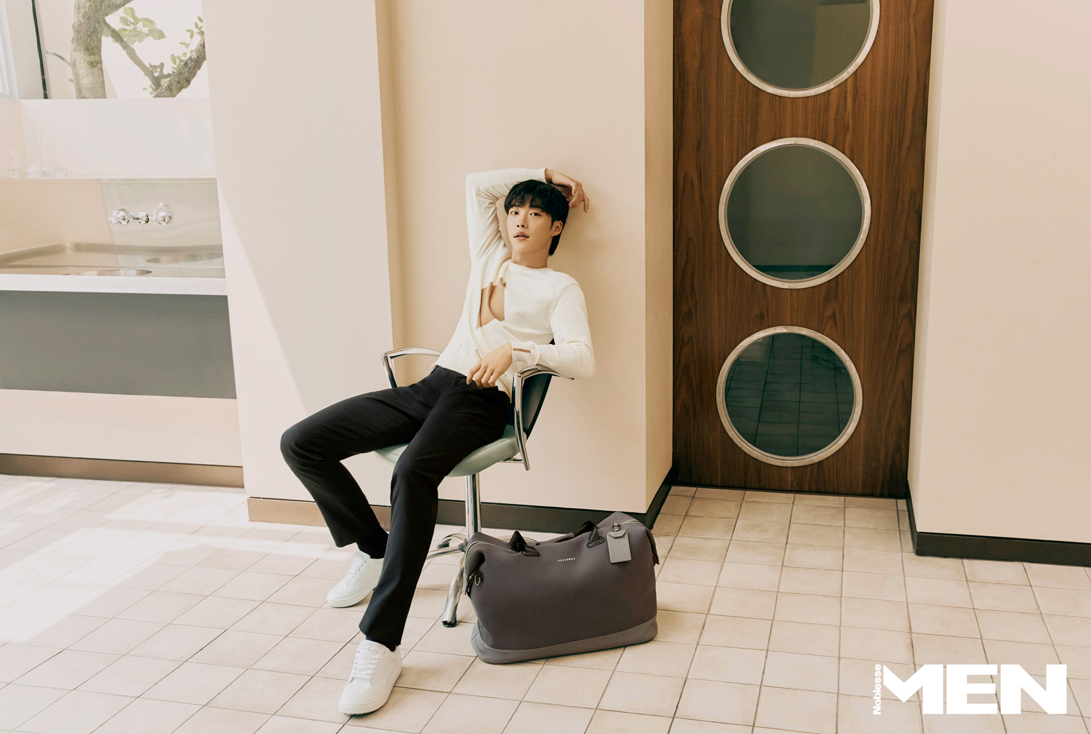 또 기온 차가 있는 가을에 활용하기 적합한 양면 아우터로 일상생활에서도 다양한 연출이 가능한 착장을 제안했다. 차분한 컬러의 스트라이프 스웨터를 함께 매칭해 자칫 심심할 수 있는 룩에 포인트를 더했으며, 우도환은 다채로운 표정과 포즈로 스타일의 화룡점정을 찍었다.